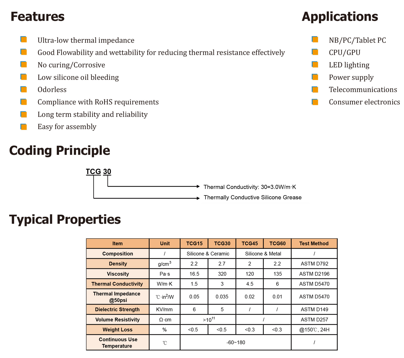 首頁 > 產品 > 熱管理材料 > 熱界面材料 (TIMs) > TCG系列導熱硅脂