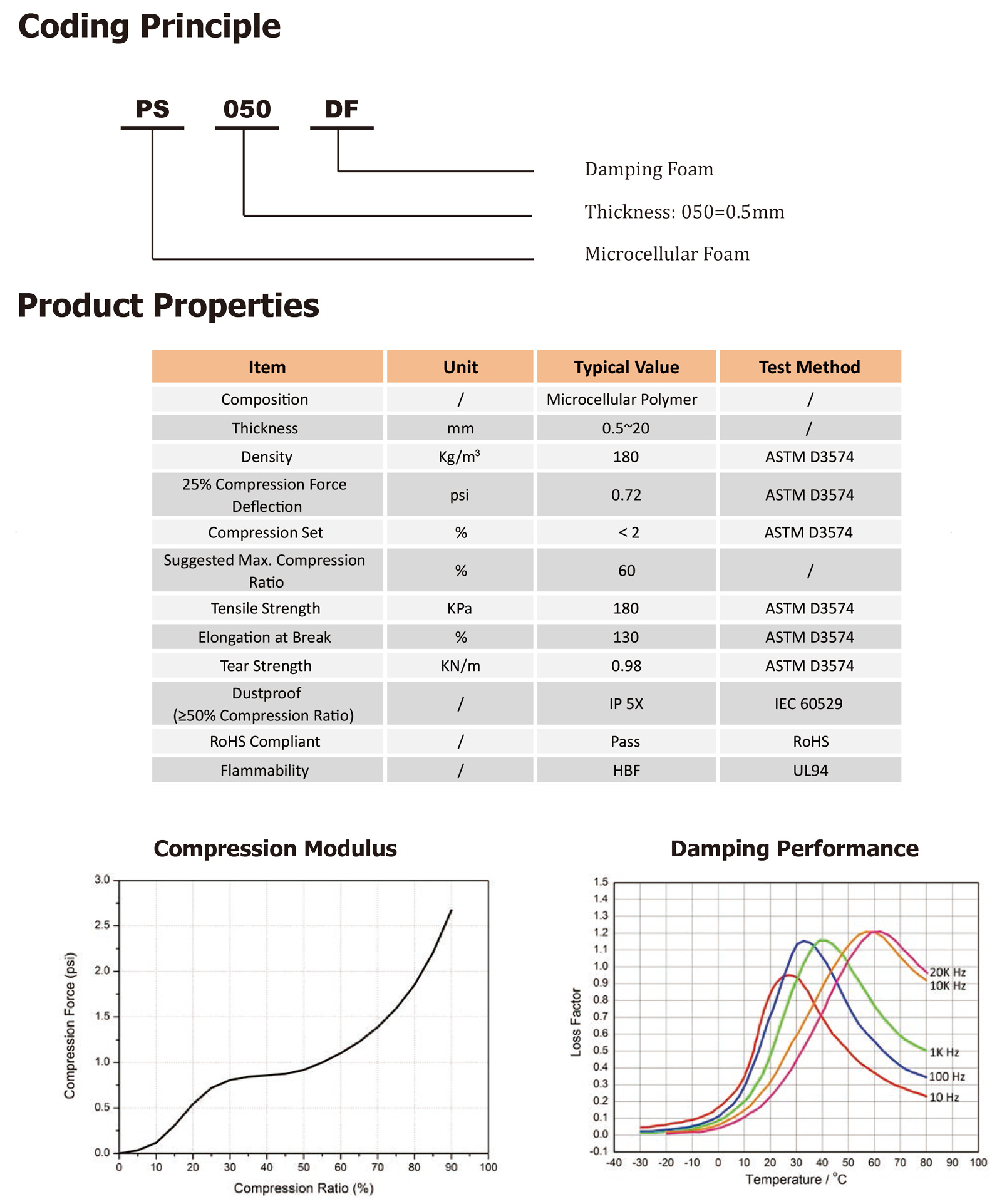 TM PS-DF阻尼泡棉是一種超柔軟、緩慢回彈的泡棉,用于電子設備應用中的減震、緩沖和長期間隙填充。PS-DF具有非常低的壓縮永久變形率、高阻尼性能和優異的沖擊吸收性能。" />